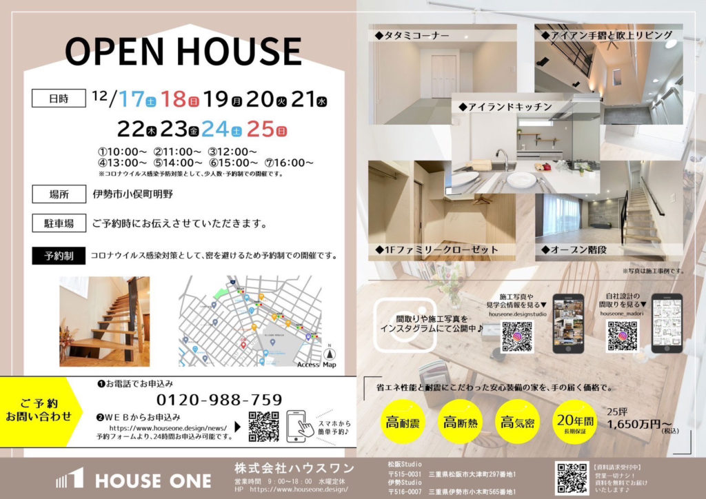 ハウスワンの見学会は、実際に建てられた方のお家を特別にお借りしての開催となりますので