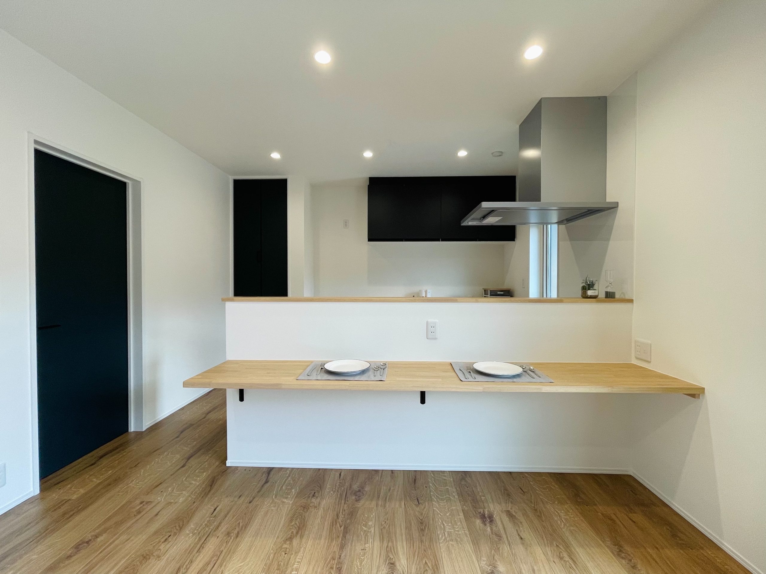 キッチン前にカウンターテーブルのあるダイニングスタイルが