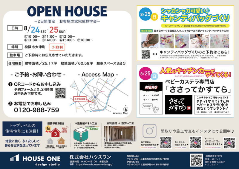 ハウスワンでは、来月も完成見学会&ワークショップの開催を予定しております!