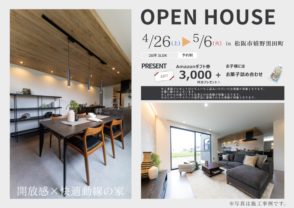ハウスワン スタッフブログ GWが始まりました 投稿日: 2025年4月27日 ise-satishome いつもご覧いただきありがとうございます。 昨日からゴールデンウィークがスタートしましたね🎏✨ ご家族で旅行に行かれる方、遊園地や水族館などへお出かけされる方、家でのんびり過ごされる方、お仕事の方…、 いろんな連休の過ごし方があると思いますが、どうぞ楽しいゴールデンウィークをお過ごしください😌🍀 さて、ハウスワンではゴールデンウィーク限定で2件の完成見学会を開催しております! まだまだご予約受付中ですので、まだゴールデンウィークのご予定がないかたはぜひ遊びに来てくださいね🎈
