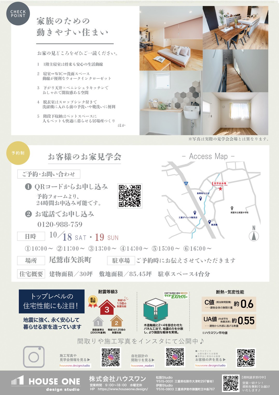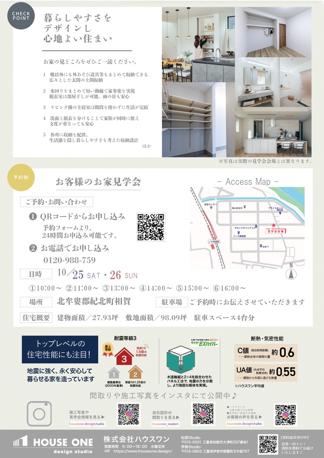 投稿日:2025年10月4日(土)~10月5日(日)の2日間、松阪市大津町にてハウスワンの見学会を開催します。 ご予約はこちら。