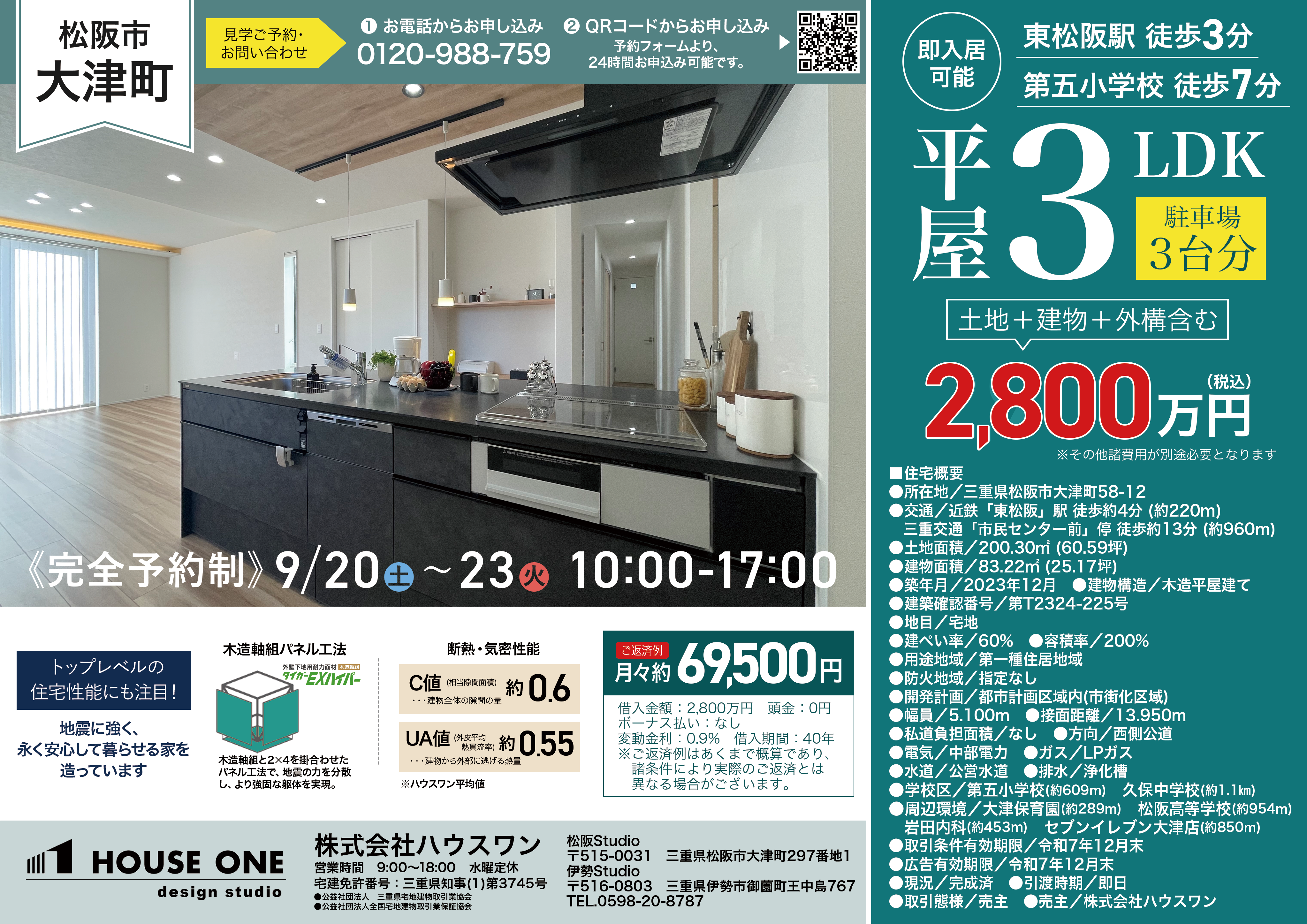 2025年9月27日(土)~9月28日(日)の2日間、松阪市大津町にてハウスワンの見学会を開催します。 ご予約はこちら。