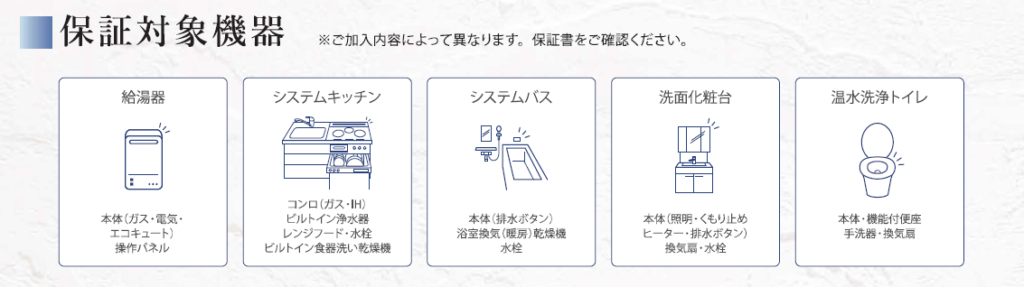 住宅設備機器に保証対象となる故障や不具合が発生した場合、10年間無料で出張修理や部品交換が受けられます。